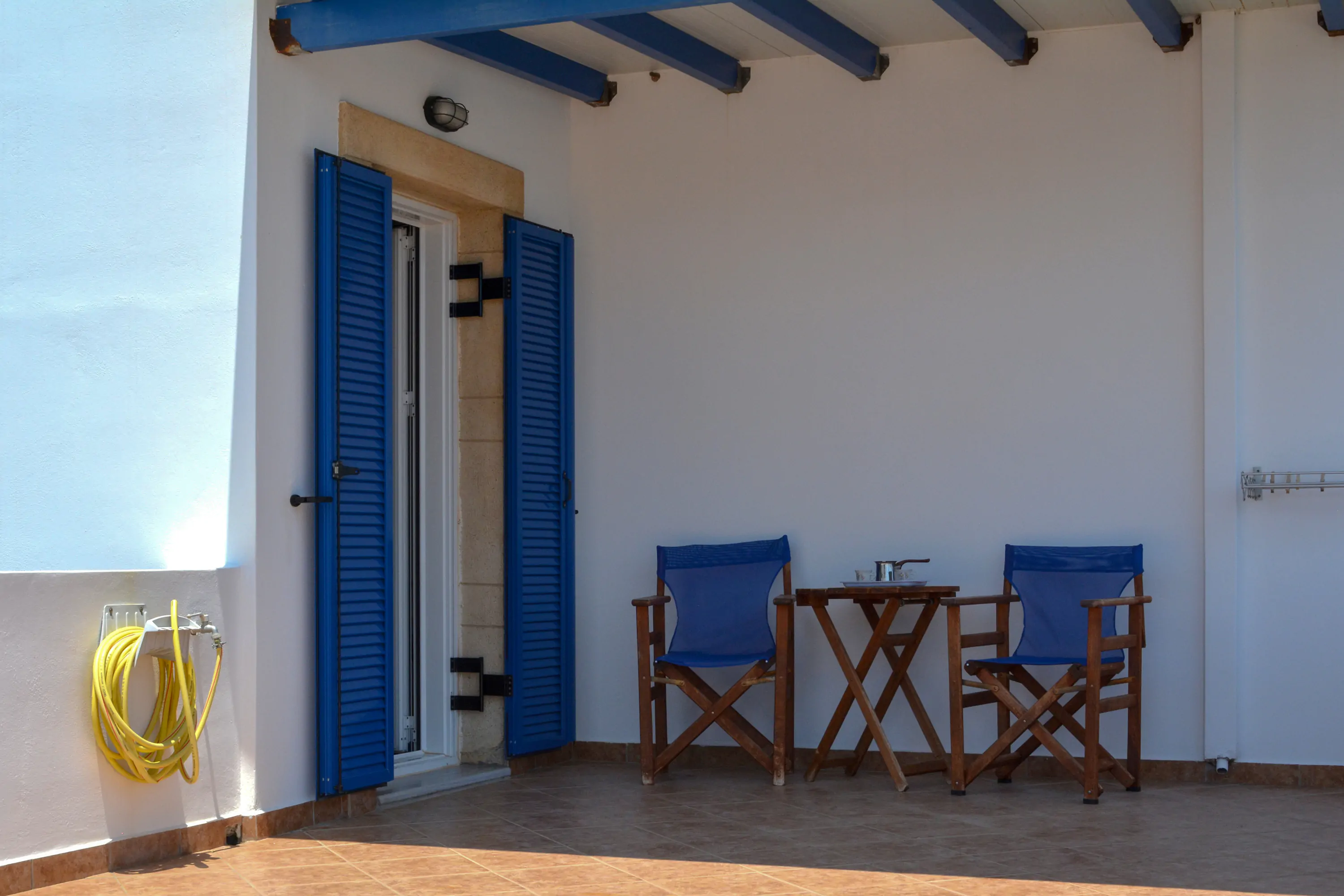 The Studio with Sea view is situated on the first floor accessible only by stairs and opens to a private huge terrace with partial view of the sea overlooking the lighthouse of Avlemonas.